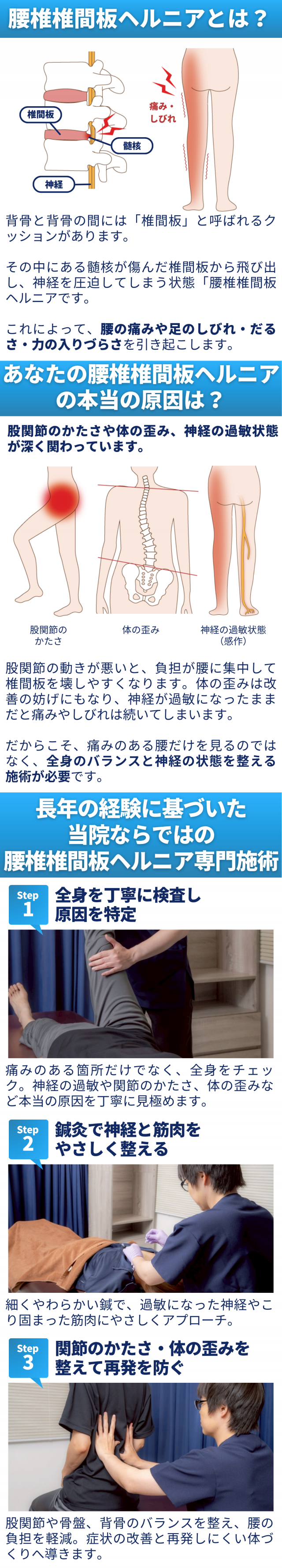 - 過去にヘルニアの手術をしたが、痛みや痺れが再発した